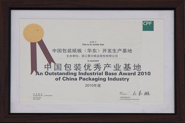 2002.09.Jingxing Paper applied for a national-level packaging board development and production base successfully passed the certification and was approved by China Packaging Technology Association [2003] No. 5 Document. It has officially become a national-level packaging board development and production base since January 2003.