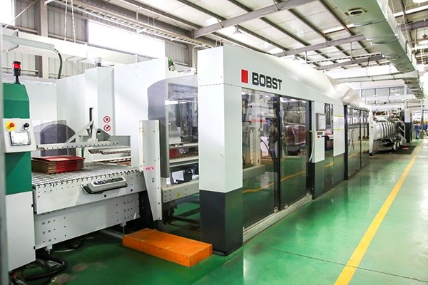 The company has an advanced corrugated cardboard production line imported from Germany and a five-color flexo-printing box linkage line imported from France, so that the production automation control is comprehensively and effectively improved. The German BHS Star of Excellence five-layer corrugated cardboard production line is designed with a maximum speed of 300 meters per minute and an annual production capacity of 100 million square meters. This assembly line adopts the most advanced international production technology, which is highly intelligent. It is equipped with QDM, which can memorize and retrieve the production data of the order to ensure stable operation. At the same time, the corrugated roller adopts the chuck installation and peripheral heating method, and the corrugated roller can be replaced the fastest 15 minutes, greatly improving the corrugation efficiency. French BOBST (Boost) FFG 8.20 automatic carton linkage line, the production speed can reach 24,000 cartons / hour, only 3 people can easily operate the machine, is the first domestic carton linkage production line of this model. The entire line has a fast setting function, which can complete the order change in only 1-2 minutes. It can slot the box with ultra-efficient production rules. It has a SOC function (the order is automatically in place after the previous order is completed), five-color printing, and automatic printing error correction. Features.