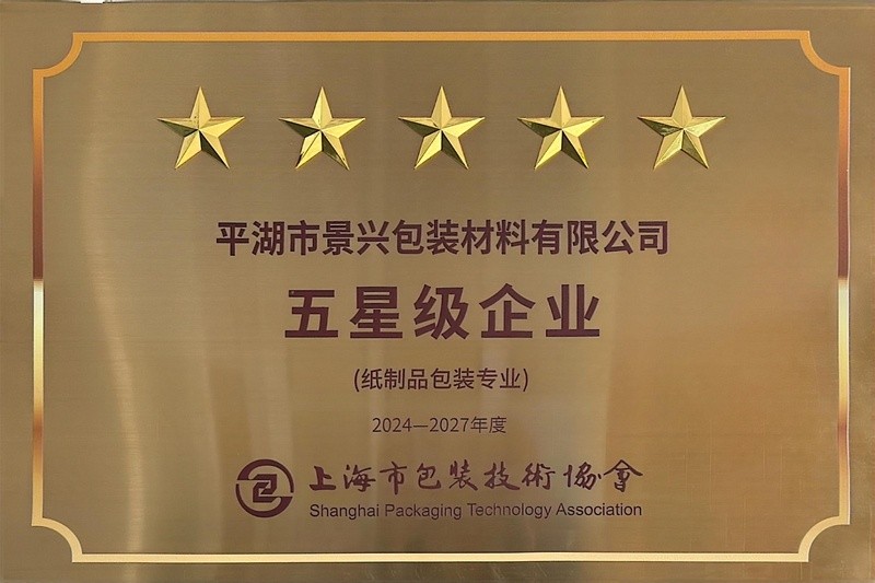 喜报!以诚为本赢在诚信9001全资子公司平湖景包被上海市包装技术协会授予纸制品包装专业“五星级企业”荣誉称号